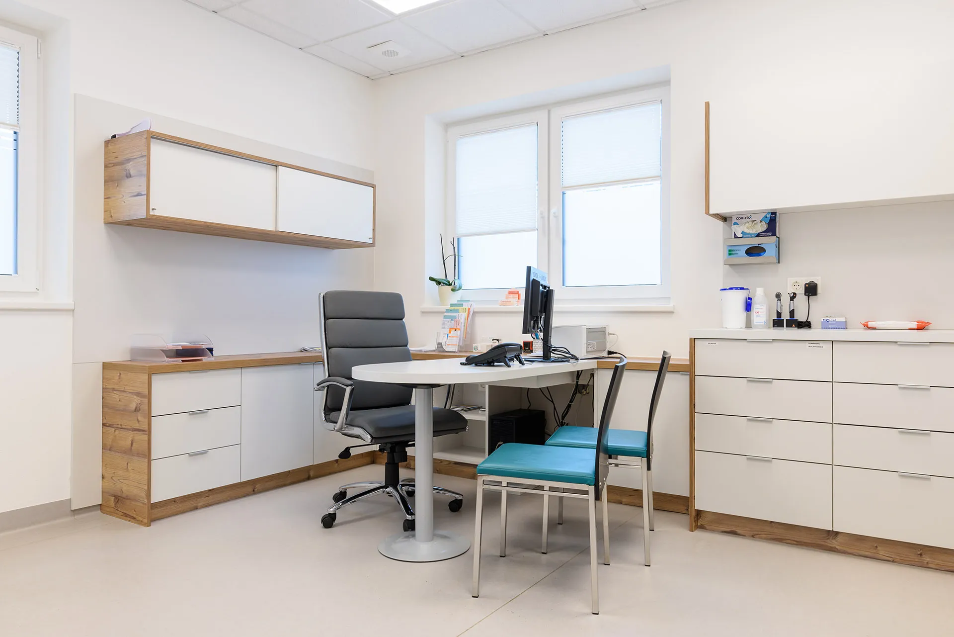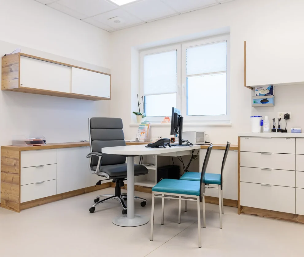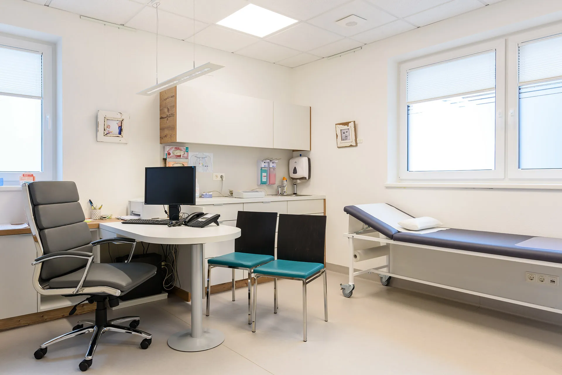 Unsere Praxis bietet Ihnen zwei helle und freundliche Ordinationsräume, die mit modernsten technischen Geräten ausgestattet sind. Der Wartebereich verfügt über eine integrierte Kinderecke, sodass sich auch unsere jüngsten Patienten wohlfühlen. Kostenlose Parkmöglichkeiten und die Rettungszufahrt befinden sich direkt vor dem Eingangsbereich.
